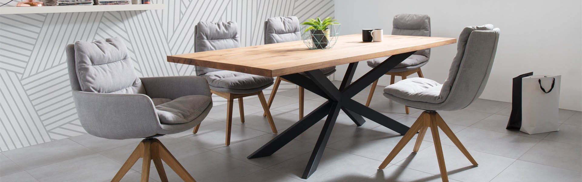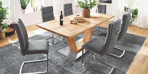 Ob großer Ausziehtisch oder kleiner Massivholztisch, hier finden Sie alles, auch die passenden Stühle und Bänke